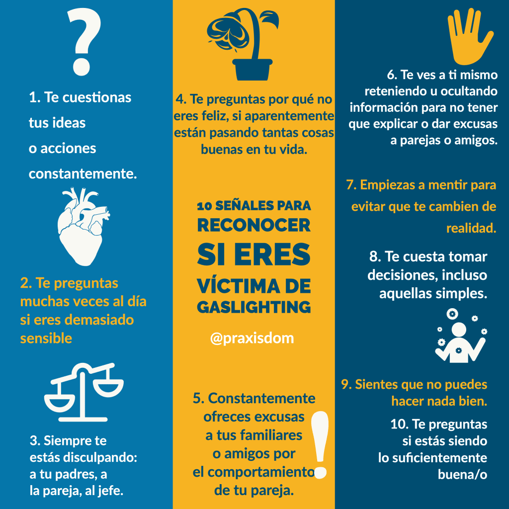 It deeply hurts the victim's self-esteem by making them believe that they are always wrong or do things wrong, as if they were the abuser. It is not enough just to make the victim doubt what they say or feel, but it also generates feelings of guilt. Phrases such as: "you are too sensitive", "you exaggerate", "that was not what I said, you are crazy", "you saw wrong, that was not what happened", in addition to being disabling, these are examples of gaslighting.